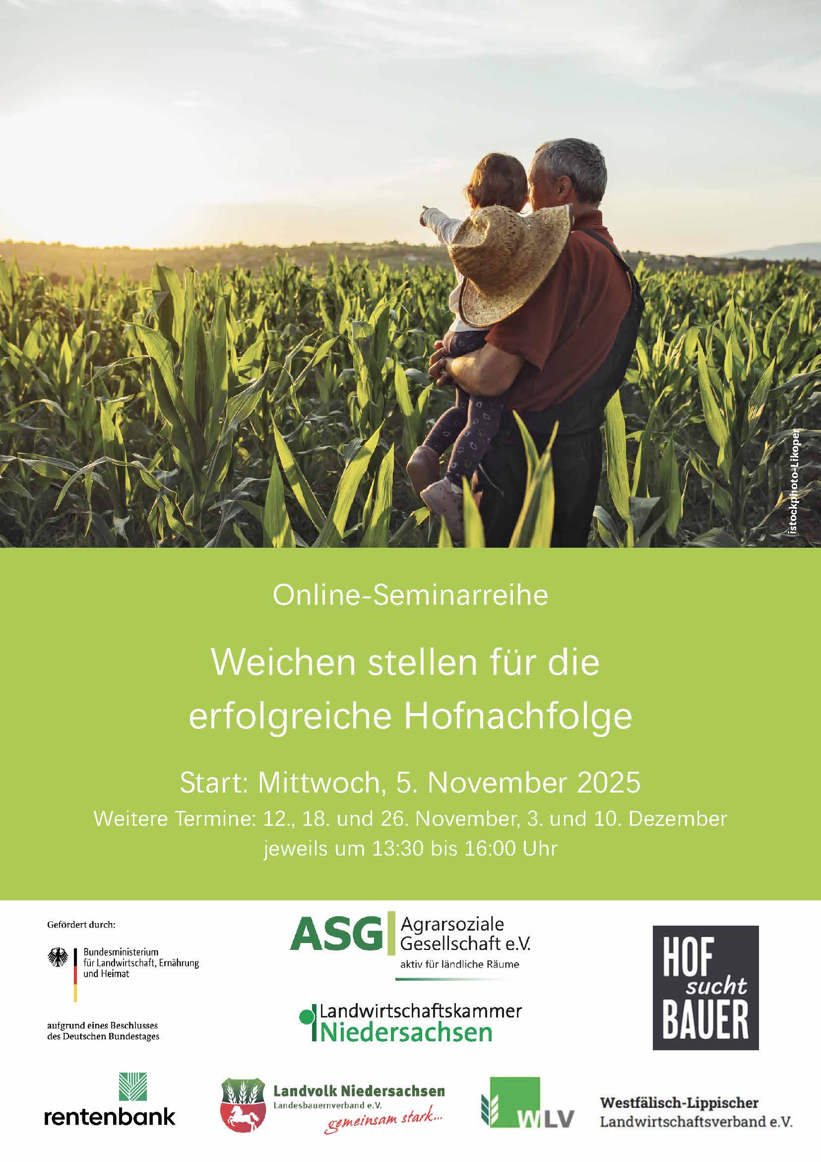 Mit dieser gemeinsamen Online-Seminarreihe wollen wir uns dem Thema Hofnachfolge aus unterschiedlichen Perspektiven nähern und vielversprechende Wege für die erfolgreiche Übergabe/ Übernahme aufzeigen.